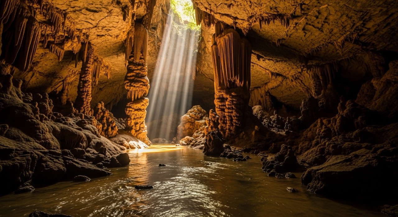 Massive limestone cave with underground river